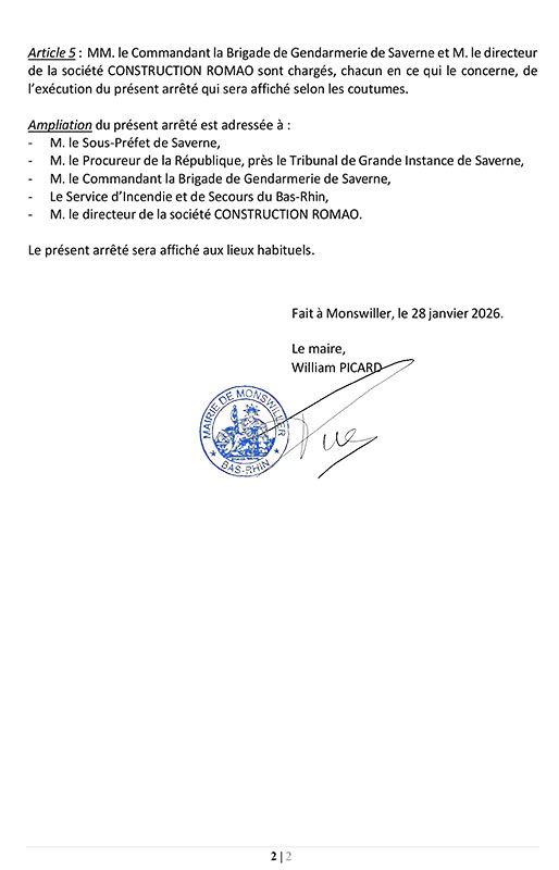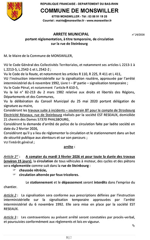 Arrêté portant règlementation, à titre temporaire, de la circulation rue de Steinbourg