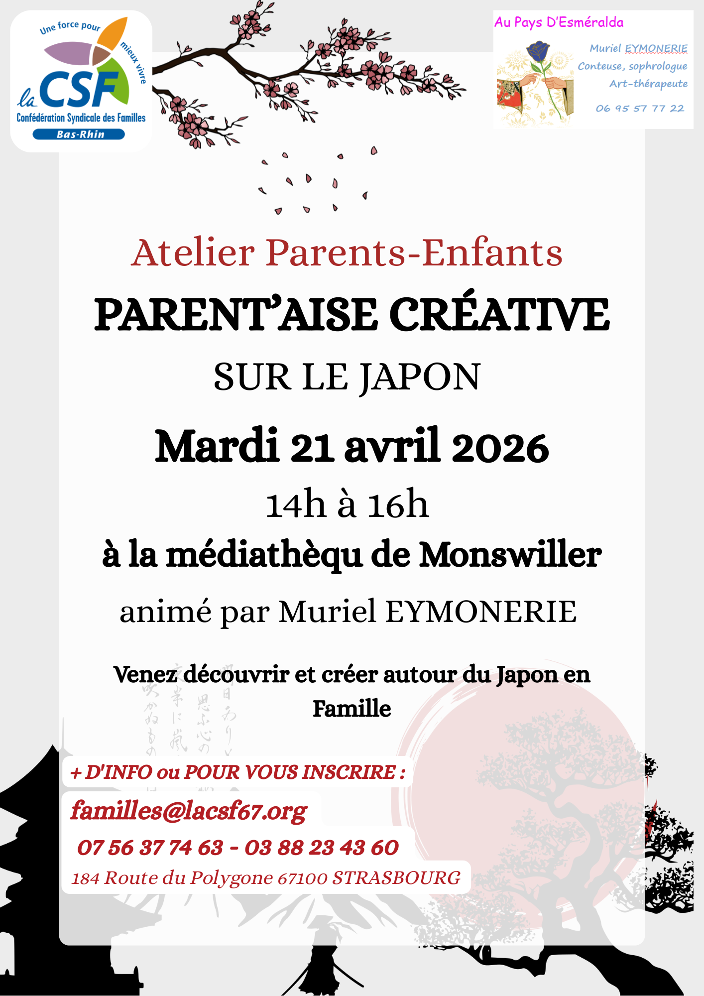 Renseignements et inscriptions : 07 56 37 74 63 ou auprès de l’UD CSF67 au 03 88 23 43 60 -Email : familles@lacsf67.org