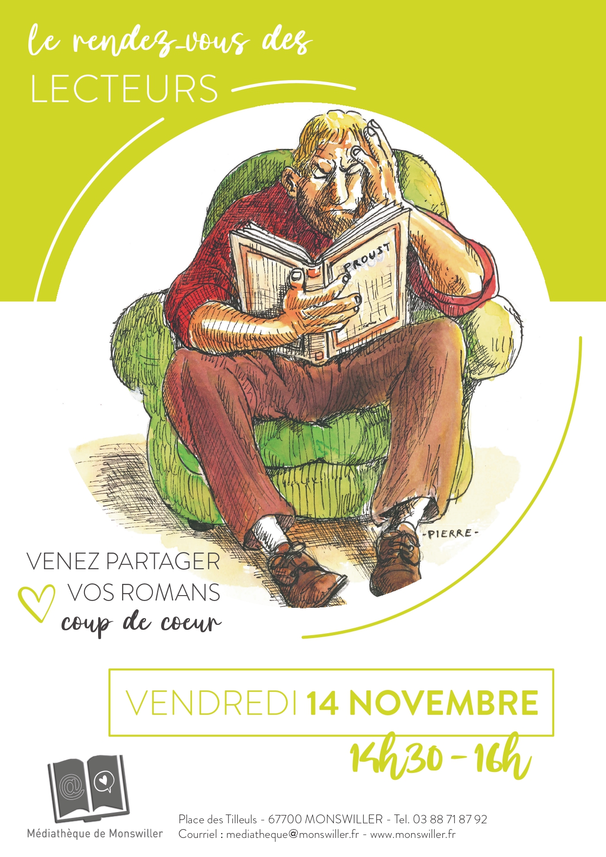 La médiathèque de Monswiller propose l’animation ‘‘le rendez-vous des lecteurs’’ vendredi 14 novembre 2025 de 14h30 à 16h.